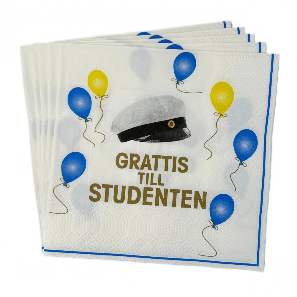 Servetter - Ballonger - Grattis till studentexamen - 16-pack